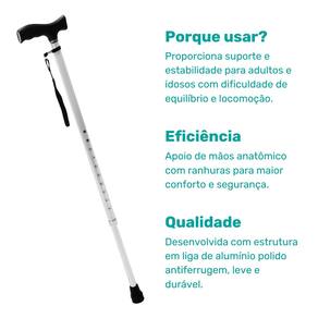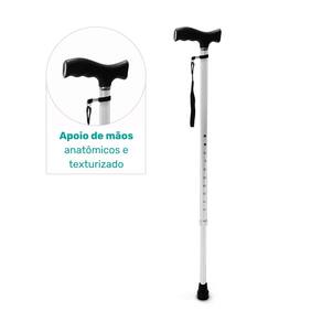 Apoio de mãos anatômico e ajustável, sem necessidade de desmontar a bengala