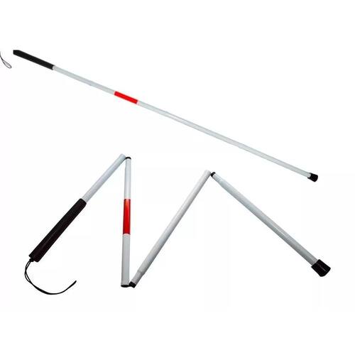 A Bengala Dobrável para Deficiente Visual Supermedy, dobra-se em 4 partes de tamanho igual para facilitar o transporte. É confeccionada em tubo de alumínio resistente garantindo durabilidade, e ponteira de nylon. Indicada para usuários de 1,50 a 2 metros de altura.