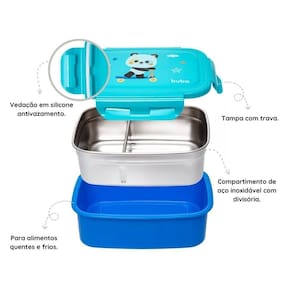 O Bento Box Buba Zoo é ideal para transportar lanchinhos quentes ou frios em passeios, viagens e à escola. Possui um compartimento interno de aço inoxidável com divisória ajustável para separar os alimentos. Atóxico, higiênico e livre de BPA, é anti vazamento e fácil de abrir e fechar.