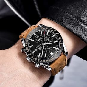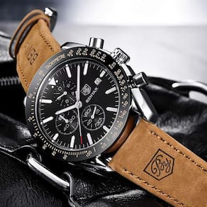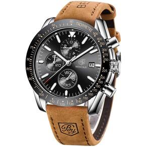 COMPOSIÇÃO DO RELÓGIO MATERRIAL:Movimento de quartzo de precisão, vidro mineral à prova de arranhões, estrutura metálica de alta qualidade e banda de couro.USO DIÁRIO: 30M à prova d'água e exibição de data, Sub-discagem de três cronógrafos, sub-discagem de 1/10 segundos, Sub-discagem de segundos e sub-discagem de minuto.Fácil de operar, intuitivo de assistir. MANUTENÇÃO PRECISA DO TEMPO: Movimento de quartzo, Fornecer manutenção de tempo precisa e precisa. ESTILO CLÁSSICO: alça de couro com mostrador clássico. Adequado para participar de várias ocasiões. Também é um bom Natal, Dia dos Namorados, casamento, presente de aniversário. EMBALAGEM E GARANTIA: Assista * 1. Caixa de relógio * 1. Manual de Instruções * 1. Cartão de garantia * 1 . Retorno incondicional dentro de 30 dias.