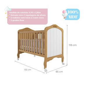 E quando o bebê crescer, ele se transforma em mini cama, com barra de proteção lateral inclusa. Medida do colchão: 0,70 x 1,30m. Conforto, segurança e versatilidade em um único berço!