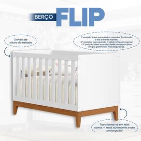 Pensado para acolher os primeiros sonhos do seu bebê, o Berço Flip une design delicado, segurança certificada e praticidade. Acompanha o crescimento da criança ao se transformar em mini cama, tornando cada fase ainda mais especial.