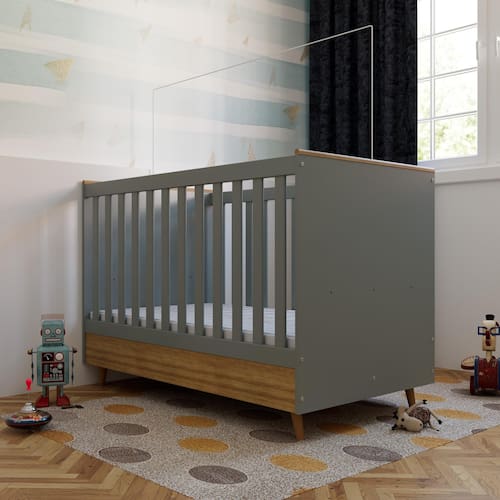 Fabricado em MDP de alta qualidade com espessuras de 12mm, 15mm e 25mm, o berço oferece resistência e durabilidade para o uso diário. Seu acabamento em Finish Foil (FF) proporciona um toque sofisticado e é fácil de limpar, enquanto as grades laterais em PVC e a moldura em MDF revestida garantem segurança e charme ao ambiente.