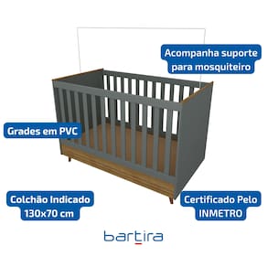 Com haste metálica para mosquiteiro e design encantador, o berço possui registro no INMETRO conforme a norma ABNT 15860-1:2016, garantindo total segurança para o seu bebê.