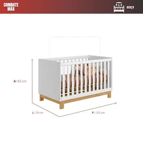 Estrutura resistente: fabricado em MDP com p?s em MDF de 25 mm. Acabamento seguro: pintura UV acetinada at?xica. Versatilidade: pode ser convertido em Mini Cama. Estrado ajust?vel: 3 n?veis de altura para acompanhar o crescimento do beb?. Seguran?a: grades fixas em MDF e suporte para mosquiteiro. Acompanha colch?o sob medida: 130 cm x 70 cm.