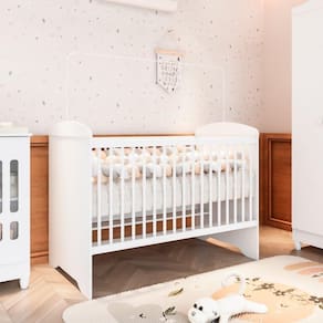 Berço 3 em 1 100% Mdf 76cm X 100cm Eloá Branco. Berço 3 em 1 Padrão Americano 100% MDF, Sustentável e Estiloso! Transforme o quarto do seu bebê com este lindo berço 3 em 1, fabricado em 100% MDF de alta qualidade, no padrão americano. Design funcional e moderno, com pés de madeira natural que dão um toque especial à decoração. Produzido com madeira de reflorestamento, é uma escolha consciente e sustentável para o seu bebê.