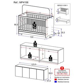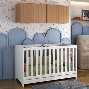 O Berço 3 em 1 com Colchão e Armário Aéreo 4 portas Multimóveis MP4158 é produzido em MDP com acabamento acetinado (cerca de 20% de brilho), garantindo durabilidade e resistência. O berço se transforma em sofá e minicama, acompanhando o crescimento do seu filho, possui 3 regulagens de altura para o colchão e acompanha suporte para mosquiteiro, que garante noites mais tranquilas de sono para o bebê. A grade Soft (PVC) é produzida de maneira ecologicamente correta, com matéria-prima livre de metais pesados, atóxica e com proteção anti-amarelamento. Berço certificado pelo INMETRO sob o selo n 0000085/2018. O colchão possui estrutura em espuma e tecido poliéster e um dos lados é impermeável. De conforto macio, possui tratamento anti-ácaro e anti-alérgico e é indicado para até 50kg. Com design moderno, o armário aéreo possui 4 portas com amplo espaço interno para organizar os objetos do bebê, suportando até 6kg em cada prateleira.