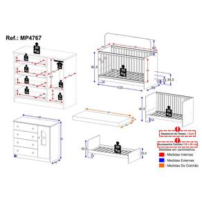 Dimensões do Produto Montado: Berço - Altura: 80,5cm | Largura: 133cm | Profundidade: 66cm Colchão - Altura: 10cm | Largura: 130cm | Profundidade: 60cm Cômoda - Altura: 83cm | Largura: 95cm | Profundidade: 42cm *Você pode consultar as medidas detalhadas na imagem técnica do produto.