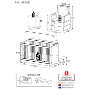 Berço - Altura: 80,5cm | Largura: 133cm | Profundidade: 66cm