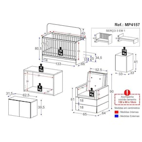 Berço - Altura: 80,5cm | Largura: 133cm | Profundidade: 66cm
