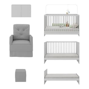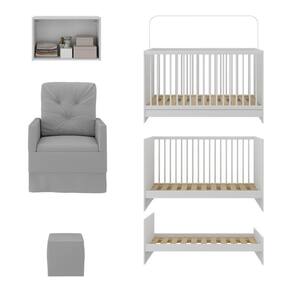Berço 3 Em 1 Com Colchão Poltrona Puff E Armário Aéreo 2 Portas Multimóveis Mp4157 Branco/cinza Branco/cinza