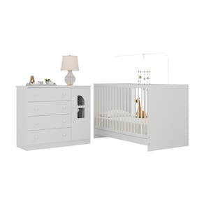 Berço 3 em 1 para Colchão 130x60cm com Cômoda 1 Porta 4 Gavetas Amora Multimóveis MP4759 - Branco