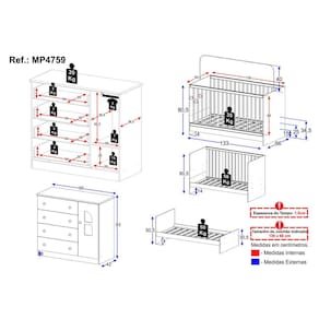 - Padrão nacional (tamanho do colchão indicado: 130x60cm). Colchão não incluso.