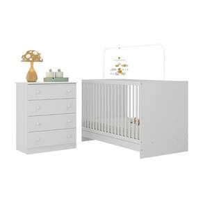 Diferenciais: - 3 anos de garantia contra defeitos de fabricação e material. - Conjunto produzido em madeira de reflorestamento (MDP 12/15mm) com acabamento acetinado (cerca de 20% de brilho): sustentabilidade e durabilidade. - Berço 3 em 1 que se transforma em sofá e minicama, acompanhando o crescimento do bebê. - Grade fixa palito produzida em madeira de pinus revestida. - Lastro em madeira com 3 regulagens de altura e suporte para mosquiteiro para noites mais tranquilas e protegidas. - Berço certificado pelo INMETRO (Selo n 000332/2025). - Padrão nacional (tamanho do colchão indicado: 130x60cm). Colchão não incluso. - Cômoda com 4 gavetas e rodapé: amplo espaço interno e elegância. - Sistema antitombamento na cômoda: proporciona segurança para o bebê e tranquilidade aos pais. - Corrediças telescópicas: abertura total e silenciosa das gavetas. - Cabideiro de alumínio: permite acomodar as roupinhas para que não amassem. - Puxadores em ABS delicados e práticos.