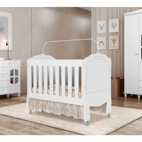 Berço 3 x 1 produzido em MDF com rodas em gel. O mesmo também pode ser montado como Berço, Sofá ou Mini-Cama. Mosqueteiro de ferro. Também conta com cantos arredondados e pintura atóxica.