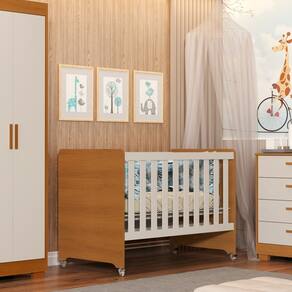 Feito em MDF de qualidade, com pintura UV atóxica e cantos arredondados, cada detalhe foi pensado para proteger seu bebê. Estrado com 3 níveis de altura permite que você ajuste conforme seu bebê cresce; -o berço também acompanha um suporte para mosquiteiro-.