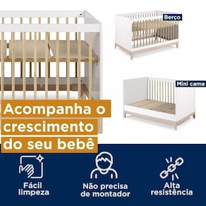 Berço Alecrim 2 em 1: Berço que Se Transforma em Mini Cama é a escolha ideal para quem busca praticidade e durabilidade. Com um design delicado e moderno, ele se adapta ao crescimento da criança, oferecendo conforto e segurança por mais tempo. Feito com materiais de alta qualidade e colchão com espuma D20, é a solução perfeita para quem deseja um móvel funcional e versátil. Tipo: Berço/Mini Cama Modelo: Alecrim Cor: Branco/Carvalho Acompanha Colchão