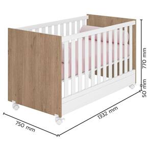 Berço Americano 100 Doce Sonho Carvalho Rústico TOQ/Branco - Qmovi