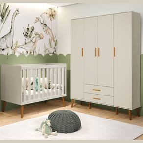 Berço Americano 2 em 1 Reller com Guarda Roupa Isis 4 Portas - Areia