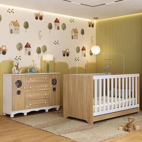 Diferenciais: - 3 anos de garantia contra defeitos de fabricação e material (exceto colchão). - Conjunto produzido em madeira de reflorestamento (MDP 12/15mm) com acabamento acetinado (cerca de 20% de brilho): sustentabilidade e durabilidade. - Berço americano 3 em 1 que se transforma em sofá e minicama, acompanhando o crescimento do bebê. Grade Soft (PVC): ecologicamente correta, com matéria-prima livre de metais pesados, atóxica e com proteção antiamarelamento. - Lastro em madeira com 3 regulagens de altura e suporte para mosquiteiro para noites mais tranquilas e protegidas. - Berço certificado pelo INMETRO (Selo n 000085/2018). - Colchão D18 incluso: possui tratamento antiácaro, antialérgico, antimofo e um dos lados impermeável. - Cômoda com 2 portas, 4 gavetas (frontais em MDF), rodapé usinado e pés em polipropileno: amplo espaço interno e elegância. - Sistema antitombamento na cômoda: proporciona segurança para o bebê e tranquilidade aos pais. - Portas com detalhes de vidro incolor temperado (3mm): toque charmoso que permite visualizar o interior do móvel. - Corrediças telescópicas: abertura total e silenciosa das gavetas. - Cabideiro de alumínio: permite acomodar as roupinhas para que não amassem. - Puxadores em ABS delicados e práticos.