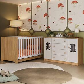 Berço Americano 3 em 1 com Colchão Incluso e Cômoda 2 Portas 4 Gavetas Teddy Multimóveis MP4735 - Madeirado | Off White