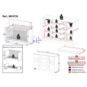 Berço - Altura: 80,5cm | Largura: 133cm | Profundidade: 77,5cm