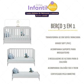 - Colchão D18 incluso: possui tratamento , , e um dos lados impermeável, oferecendo conforto durante o soninho.