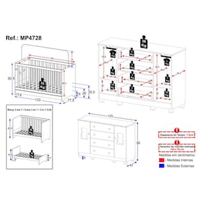 - Padrão americano (tamanho do colchão indicado: 130x70cm). Colchão não incluso.