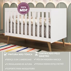O Berço Retrô Americano 3 em 1 é a escolha perfeita para quem deseja unir segurança, elegância e funcionalidade no quarto do bebê. Com design retrô moderno, pés palito em madeira maciça e estrutura em MDF premium, este berço oferece resistência, estabilidade e um visual encantador que transforma qualquer ambiente.