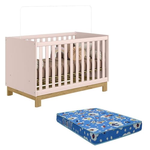 Berço Americano 4315 Q Encanto Slim Rosa Acetinado com Colchão Ortobom – Qmovi