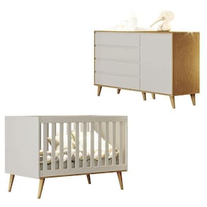 Berço Americano Ludmila e Cômoda Gran Lorena Off White Bétula Carolina Baby