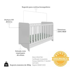 Berço Americano Ben 3 em 1 com Colchão Supreme - Móveis Peroba - Branco