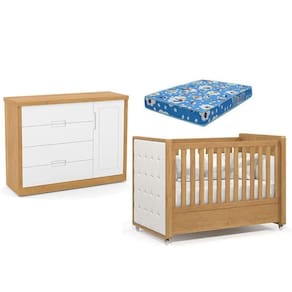 Berço Americano com Capitonê New Boucle e Cômoda Infantil Tutto New Freijó e Colchão Ortobom - Matic