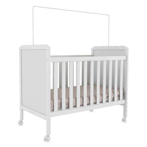 ESPECIFICAÇÕES: Estrutura em MDF Pintura UV atóxica Certificado pelo INMETRO 000994/2017 Padrão americano 2 em 1: Berço ou mini cama 3 Regulagens de altura do estrado Bordas arredondadas e laqueadas Grades fixas 4 Rodízios sendo 2 com trava e 2 sem trava Suporta até 40kg Acompanha suporte mosquiteiro Colchão recomendado 130 x 70 cm Não acompanha colchão