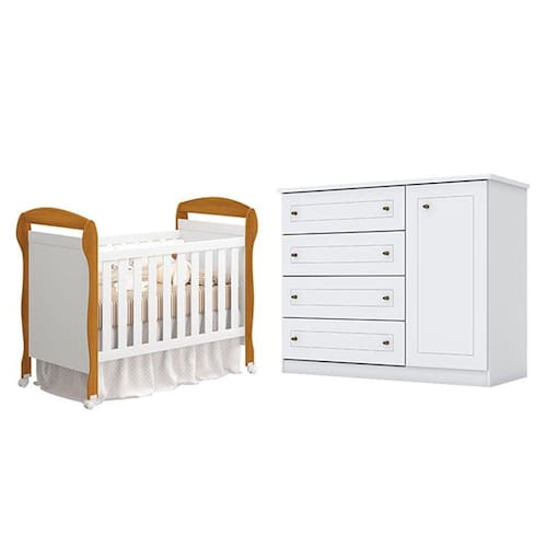 Berço Americano Danny Branco Acetinado Savana Reller e Cômoda Branco HP - Henn.