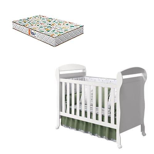 Berço Americano Danny Branco Brilho com Colchão Gazin Reller