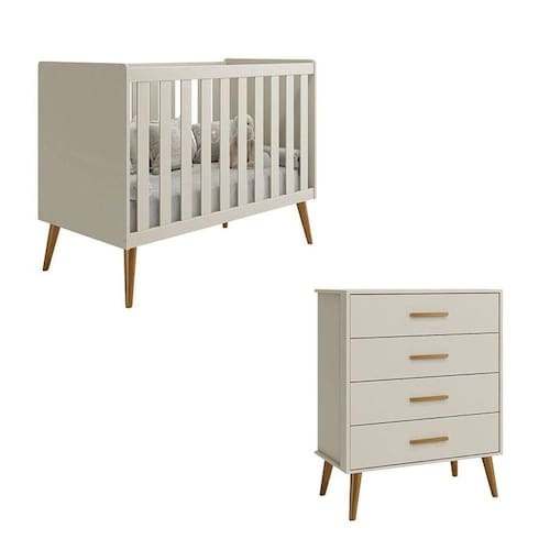 Berço Americano e Cômoda Gaveteiro Infantil Isis Areia Acetinado - Reller
