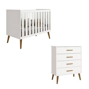 Berço Americano e Cômoda Gaveteiro Infantil Isis Branco Acetinado - Reller