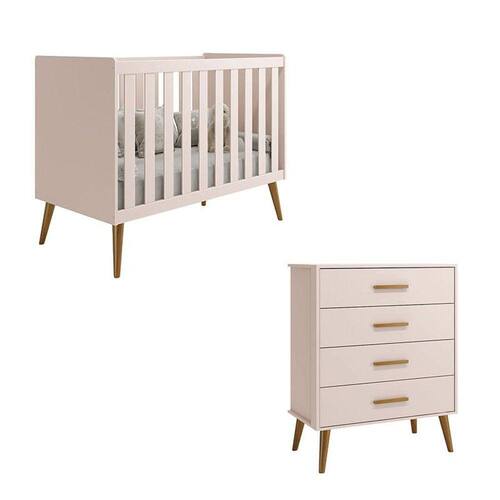 Berço Americano e Cômoda Gaveteiro Infantil Isis Rosa Acetinado - Reller