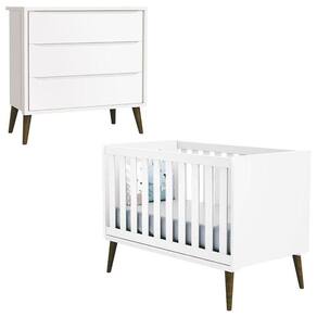 Berço Americano e Cômoda Gaveteiro Infantil Theo Branco Acetinado com Pés Amadeirados Reller