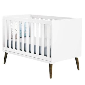Berço Americano Theo Branco Acetinado com Pés Amadeirados - Reller