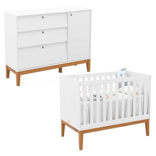 Berço Americano e Cômoda Sapateira Unique Branco Soft Eco Wood - Matic