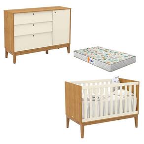 Berço Americano e Cômoda Sapateira Freijó Off White Eco Wood com Colchão Gazin - Matic