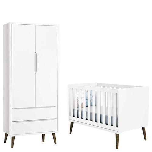 Berço Americano e Guarda Roupa 2 Portas Infantil Theo Branco Acetinado com Pés Amadeirados - Reller