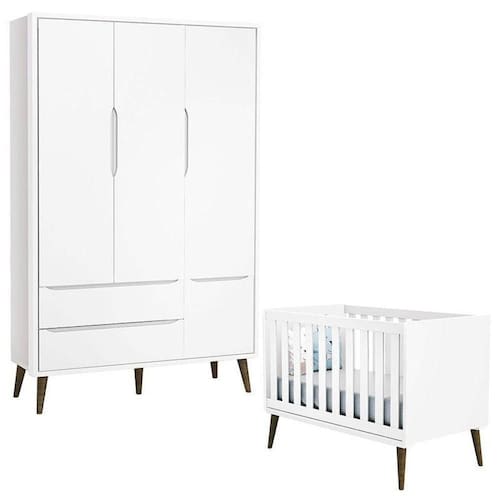 Berço Americano e Guarda Roupa 3 Portas Infantil Theo Branco Acetinado com Pés Amadeirados ? Reller