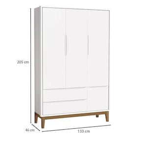 Guarda Roupa Infantil New Classic 3 Portas Branco com Pés Madeira Reller