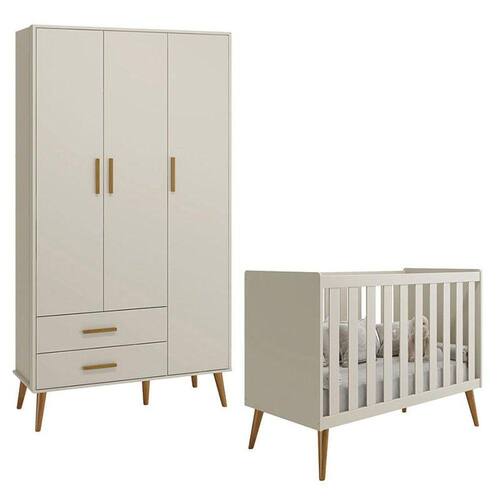 Berço Americano e Guarda Roupa Infantil 3 Portas Isis Areia Acetinado - Reller