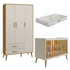 Berço Americano e Guarda Roupa Infantil 3 Portas Isis Areia Acetinado Savana com Colchão Gazin - Reller