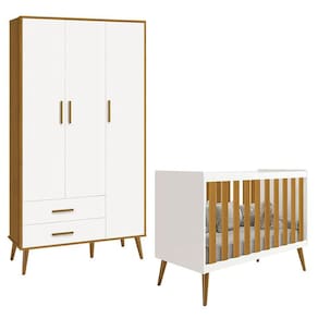 Berço Americano e Guarda Roupa Infantil 3 Portas Isis Branco Acetinado Savana - Reller
