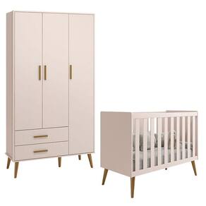 Berço Americano e Guarda Roupa Infantil 3 Portas Isis Rosa Acetinado - Reller